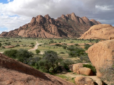 Namibia is a large country located in the southwestern corner of Africa and one of the driest regions on earth. The Namib Desert extends along the western coast over some 1.350 km, broadens from 50-160 km, and comes to an end at the vaulted escarpment of the central highlands. To the east these transition into the Kalahari, a vast sandy basin reaching far north above Southern Africa. It is intermitted by a large depression watered by the Okavango River, which ceases in the wetlands of the Okavango-Delta in Botswana. In the south the Southern African Karoo reaches Namibia, while the Namib Desert approximately terminates at the Olifants River in South Africa. Average rainfall across the country is 270 mm per year, and only in the north-east (Caprivi strip) the annual precipitation reaches 700 mm. To the west, in the direction of the Namib, the amount of rainfall drops abruptly. These arid areas may show longer periods of drought, in the wetter north-east it rains more regularly and intense. The wet season starts generally from October/November (Summer Rainfall Region of northern Namibia), with a peak - if any - to be expected in January/February. Only in the south rain occurs in Winter (Winter Rainfall Cape Region). Overall there are more than 300 sunny days per year. The climate is characterized by two seasons, the cool winter from May to September and the warm to hot summer from October until April. Seasonal differences level out northwards. The major vegetation forms in Namibia are savanna (64 %), dry forest (20 %) and desert vegetation (16 %). Some 25 % of the country are still more or less true wilderness, which are to a great extent protected in national conservation areas, but essential parts (45 %) are cultivated steppe or farmland.